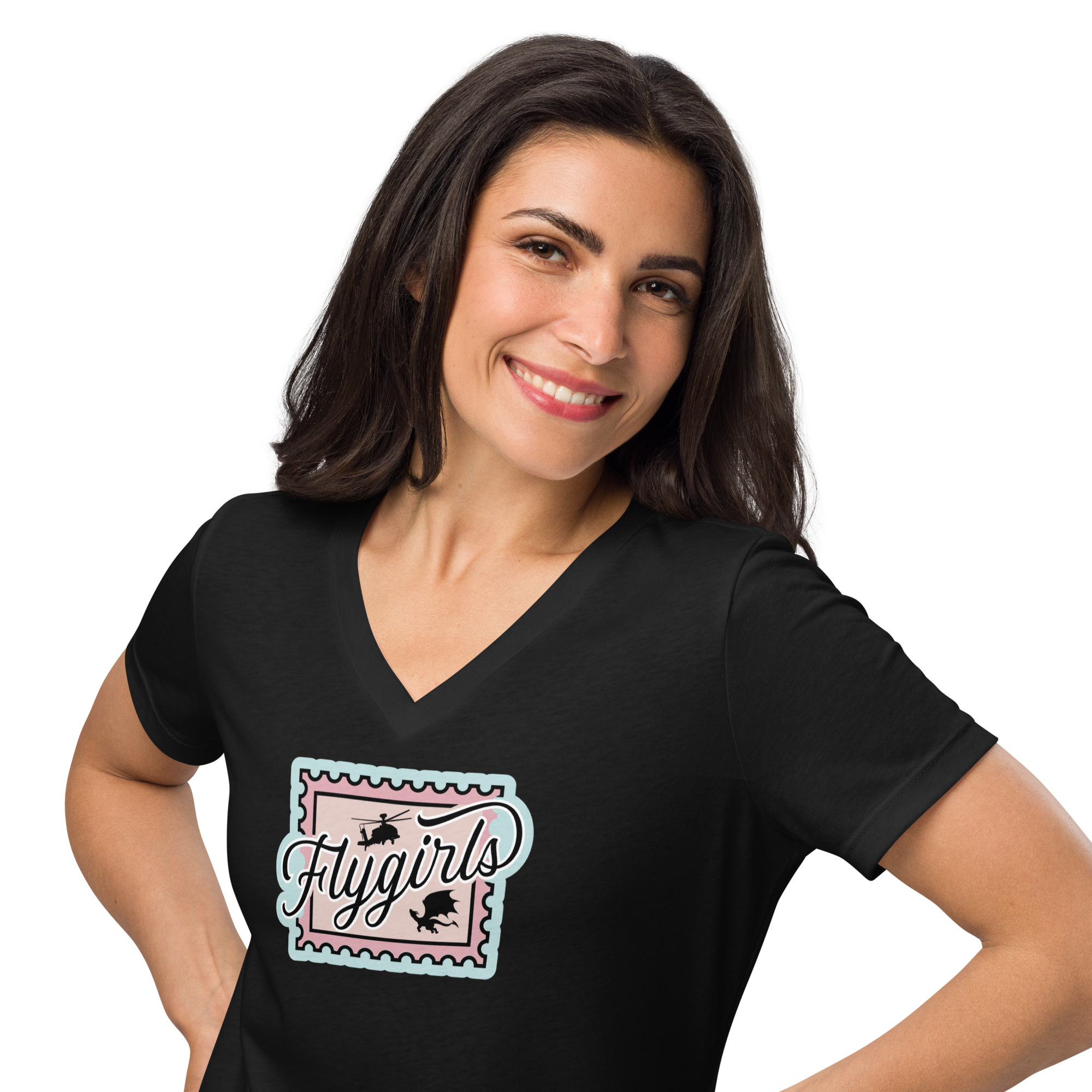 Flygirls Stamp Women's Relaxed V-Neck Tee (Color)