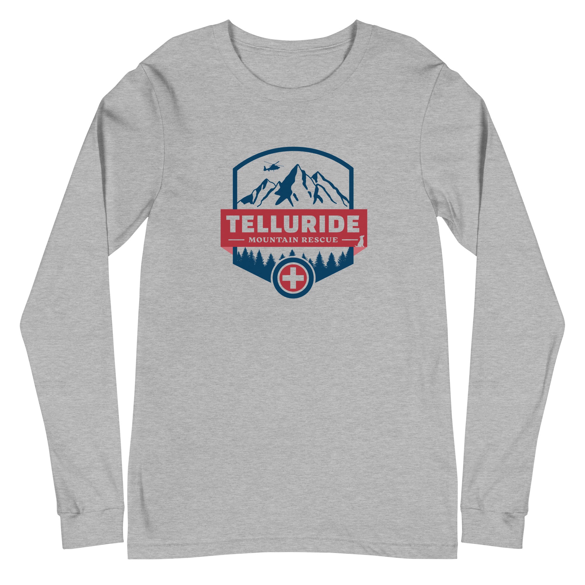Show your support for Beckett, Radar, and the Telluride Mountain Rescue team with this long sleeve t-shirt!